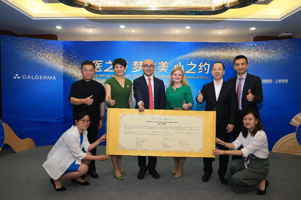 高德美大中華區(qū)總經(jīng)理和中國區(qū)總裁Olivia Brown,高德美中國美學(xué)事業(yè)部總經(jīng)理周昭華、高德美大中華區(qū)財(cái)務(wù)總監(jiān)包立夫、法務(wù)與合規(guī)總監(jiān)馮利、運(yùn)營總監(jiān)黃宏濤、醫(yī)學(xué)事務(wù)及注冊事務(wù)部總監(jiān)聶亞一;上藥控股總經(jīng)理李永忠,上藥控股副總經(jīng)理任剛,上藥控股國際總部總經(jīng)理、上藥康德樂總經(jīng)理艾力,上藥康德樂羅達(dá)總經(jīng)理鄭偉,上藥控股四川生物總經(jīng)理李曉華,寰通商務(wù)科技總經(jīng)理朱文川等出席了簽約儀式。