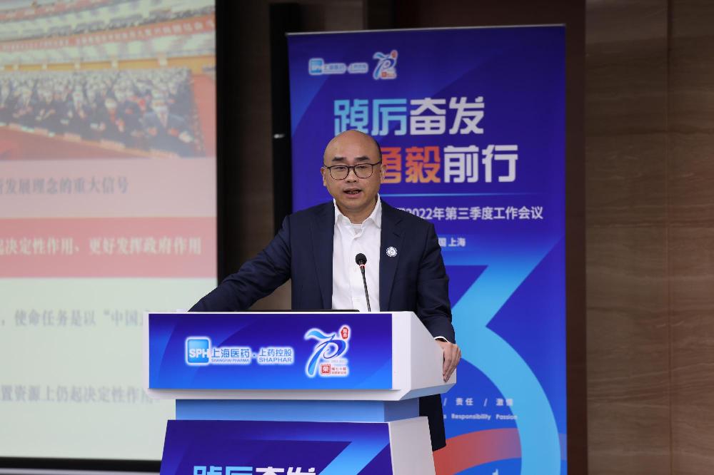 上海醫(yī)藥執(zhí)行董事、副總裁、上藥控股黨委副書記、總經(jīng)理李永忠作重點(diǎn)戰(zhàn)略部署。今年是上藥控股成立70周年,全體員工同心同向、苦干實(shí)干,延續(xù)了大上海保衛(wèi)戰(zhàn)中敢于戰(zhàn)斗、敢于攻堅、敢于勝利的精神,落實(shí)了“疫情要防住、經(jīng)濟(jì)要穩(wěn)住、發(fā)展要安全”的工作要求。他希望全體干部進(jìn)一步統(tǒng)一思想、凝聚共識,把學(xué)習(xí)、理解、貫徹黨的二十大精神融入轉(zhuǎn)型發(fā)展,用新的奮斗精神創(chuàng)造新的成績,保障國家醫(yī)療供應(yīng)鏈安全,推動生物醫(yī)藥產(chǎn)業(yè)和公立醫(yī)院高質(zhì)量發(fā)展,助推健康中國戰(zhàn)略。李永忠總經(jīng)理強(qiáng)調(diào),全體干部務(wù)必堅定倍增轉(zhuǎn)型的發(fā)展信心,增強(qiáng)時不我待的緊迫感,以奮進(jìn)十四五、落實(shí)五大戰(zhàn)略為重點(diǎn),全力沖刺四季度,科學(xué)謀劃明年工作,力爭在運(yùn)營能力上實(shí)現(xiàn)新提升,在業(yè)務(wù)整合上實(shí)現(xiàn)新突破,在轉(zhuǎn)型發(fā)展上實(shí)現(xiàn)新跨越。