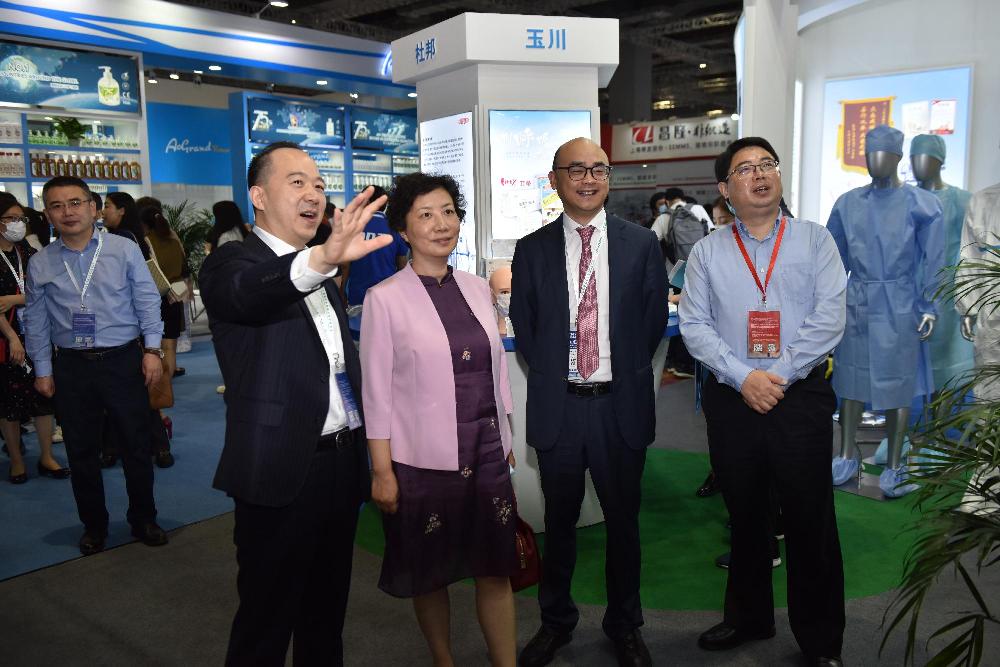 7月16日,上海市發(fā)展改革委黨組副書記、市糧食物資儲備局局長殷歐,市糧食物資儲備局副局長殷飛等一行來到上藥控股的展臺進行參觀。