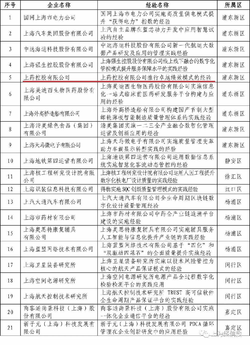 近日,上海市經(jīng)濟(jì)信息化委公布了2020年度上海市“質(zhì)量標(biāo)桿”名單,上藥控股申報的“上藥控股有限公司推行卓越績效模式的經(jīng)驗(yàn)”作為本次公示的21項(xiàng)企業(yè)經(jīng)驗(yàn)之一,成功入選名單。