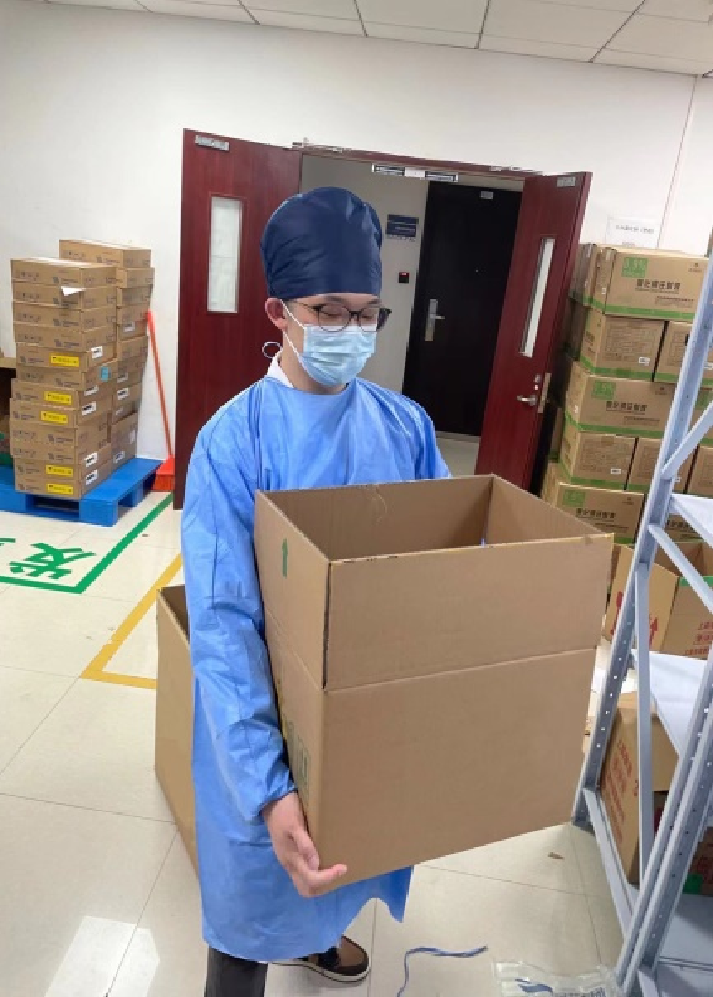 為強(qiáng)化疫情期間針對醫(yī)療機(jī)構(gòu)的各項醫(yī)療防護(hù)物資保供,在不占用醫(yī)護(hù)住宿條件的情況下,上藥醫(yī)療器械SPD運(yùn)營總部堅持部署最大限度的人數(shù)配置,保證各醫(yī)院的SPD服務(wù)正常運(yùn)行,80多名SPD員工奮戰(zhàn)在醫(yī)院一線,隨時響應(yīng)醫(yī)院的需求。SPD運(yùn)營經(jīng)理顧寅韜所在的醫(yī)院共有4人,團(tuán)隊每次搬運(yùn)物資時,都要經(jīng)過從地下車庫到地面的一條長長的傾斜坡道。一個多月的來回搬運(yùn),幾乎磨平了員工的舊鞋。四月,嘉定某醫(yī)院即將轉(zhuǎn)型為新冠肺炎定點(diǎn)治療醫(yī)院,現(xiàn)場SPD人員告急,只剩下了1位員工,但病患的救治一刻也不能耽擱!剛結(jié)束金山公衛(wèi)支援任務(wù)的李猛迅速報名了支援工作。他也基于醫(yī)院的實(shí)際情況,分享了援助公衛(wèi)中心時學(xué)習(xí)的院感經(jīng)驗(yàn),向醫(yī)院提出了多項合理化建議,得到了院方的好評。
