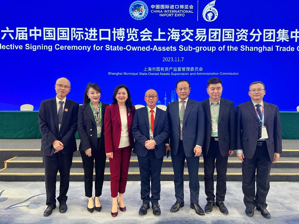 2023年11月7日,中國,上海 –上海醫(yī)藥連續(xù)第六年亮相進(jìn)博會(huì)上海交易團(tuán)國資分團(tuán)簽約現(xiàn)場,再次作為交易團(tuán)成員參與集中簽約儀式。出席本次集中簽約的領(lǐng)導(dǎo)有上海市副市長陳杰,上海市政府副秘書長莊木弟,中國國際進(jìn)口博覽局副局長劉福學(xué),上海市國資委黨委副書記、一級巡視員程巍等。上實(shí)集團(tuán)副總裁張芊,上藥控股副總經(jīng)理宋潞潞作為簽約項(xiàng)目中方企業(yè)代表參加了本次簽約儀式。